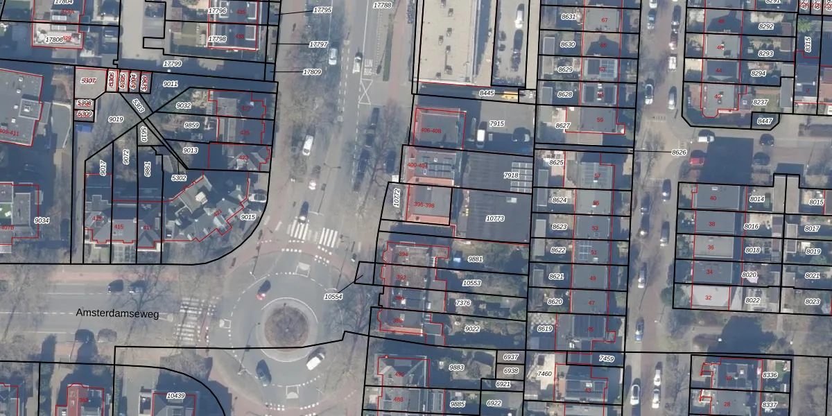 Amsterdamseweg 396 is gelegen op kadastraal perceel ASV00H10772. Deze kadastrale aanduiding is uniek en wordt gebruikt door het Kadaster om eigendomsrechten en andere zakelijke rechten vast te leggen. Het perceel maakt onderdeel uit van de kadastrale gemeente Amstelveen.