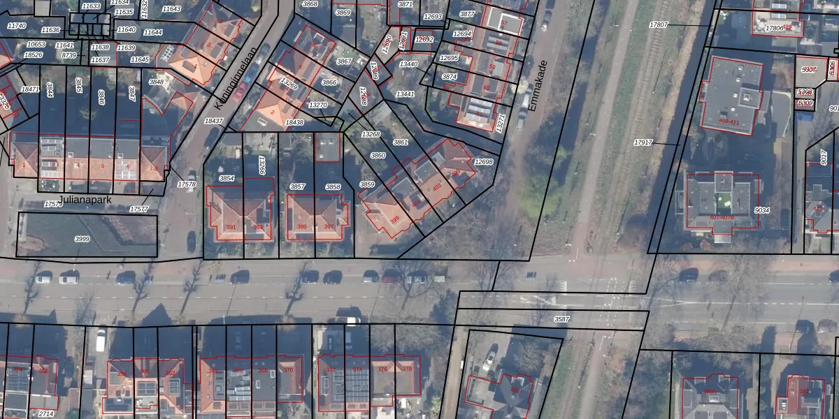 Gebruik de zoekbalk of klik op een perceel voor informatie over de adressen binnen dit perceel.