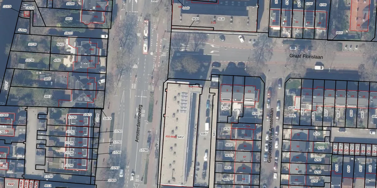 Amsterdamseweg 436-A is gelegen op kadastraal perceel ASV00H9402. Deze kadastrale aanduiding is uniek en wordt gebruikt door het Kadaster om eigendomsrechten en andere zakelijke rechten vast te leggen. Het perceel maakt onderdeel uit van de kadastrale gemeente Amstelveen.