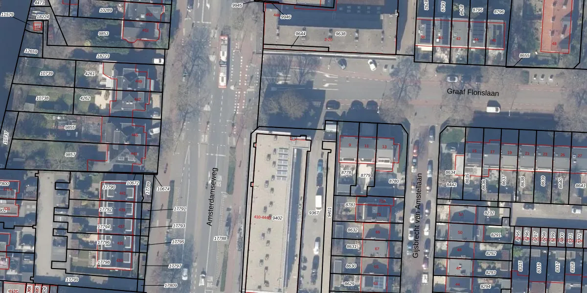 Amsterdamseweg 438 is gelegen op kadastraal perceel ASV00H9402. Deze kadastrale aanduiding is uniek en wordt gebruikt door het Kadaster om eigendomsrechten en andere zakelijke rechten vast te leggen. Het perceel maakt onderdeel uit van de kadastrale gemeente Amstelveen.