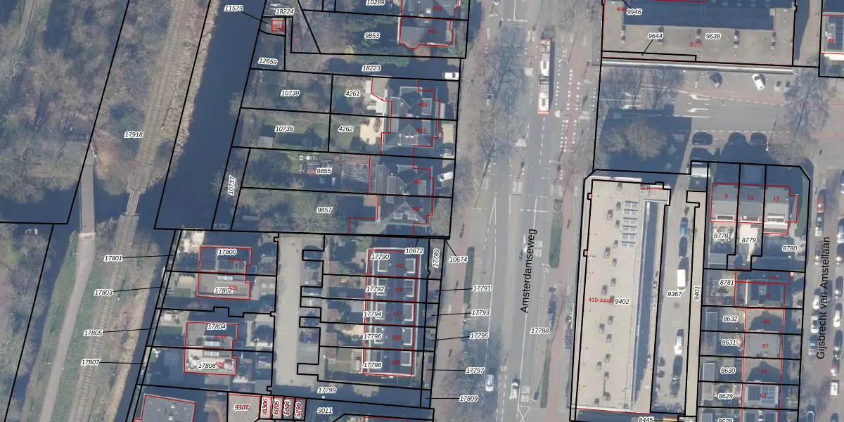 Amsterdamseweg 443 is gelegen op kadastraal perceel ASV00H9857. Deze kadastrale aanduiding is uniek en wordt gebruikt door het Kadaster om eigendomsrechten en andere zakelijke rechten vast te leggen. Het perceel maakt onderdeel uit van de kadastrale gemeente Amstelveen.