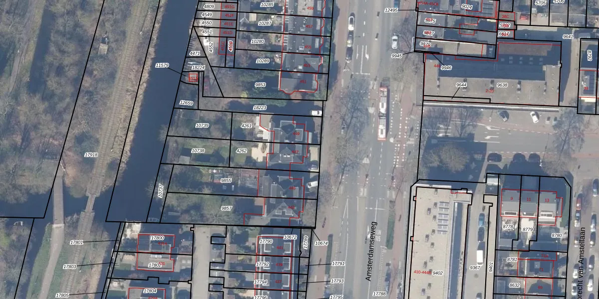 Amsterdamseweg 447 is gelegen op kadastraal perceel ASV00H4262. Deze kadastrale aanduiding is uniek en wordt gebruikt door het Kadaster om eigendomsrechten en andere zakelijke rechten vast te leggen. Het perceel maakt onderdeel uit van de kadastrale gemeente Amstelveen.