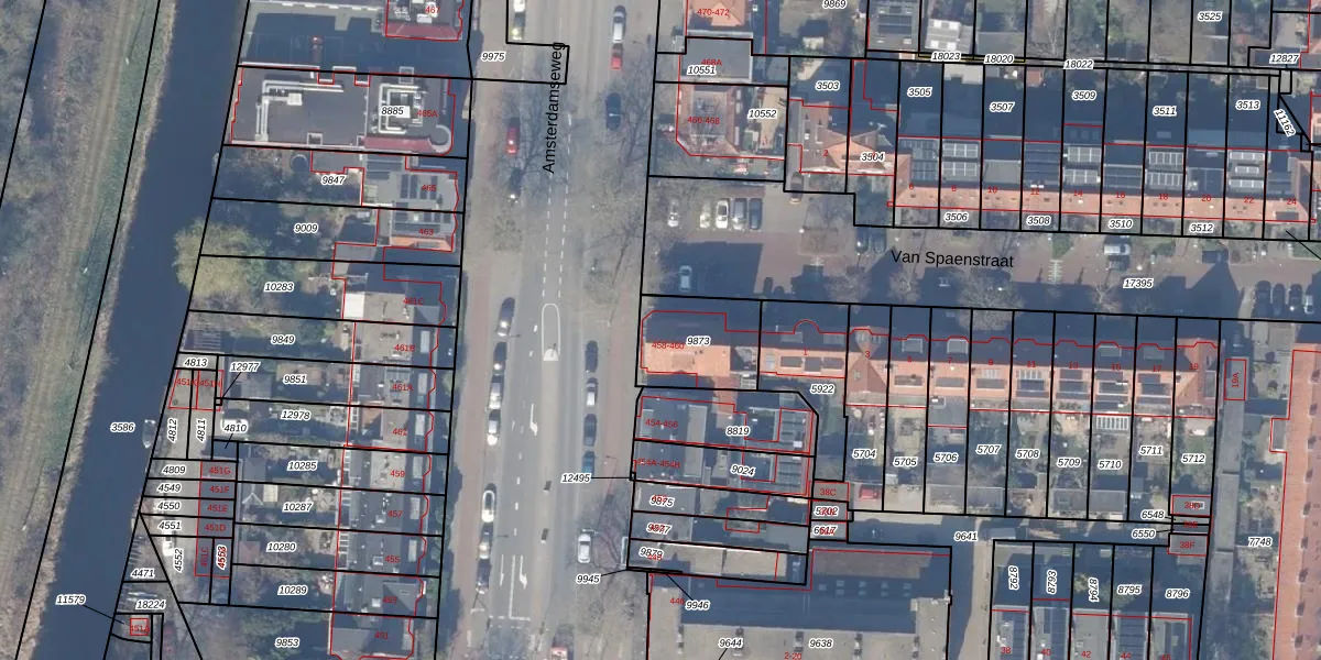 Amsterdamseweg 460 is gelegen op kadastraal perceel ASV00H9873. Deze kadastrale aanduiding is uniek en wordt gebruikt door het Kadaster om eigendomsrechten en andere zakelijke rechten vast te leggen. Het perceel maakt onderdeel uit van de kadastrale gemeente Amstelveen.