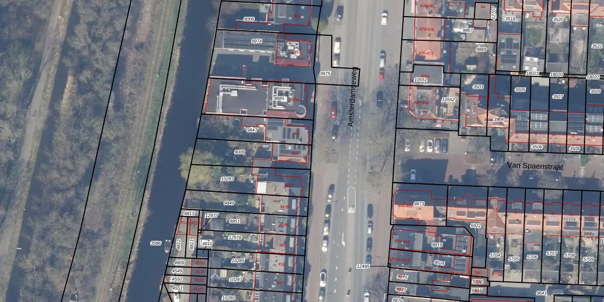 Gebruik de zoekbalk of klik op een perceel voor informatie over de adressen binnen dit perceel.