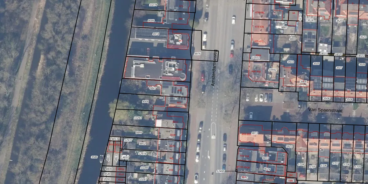 Gebruik de zoekbalk of klik op een perceel voor informatie over de adressen binnen dit perceel.