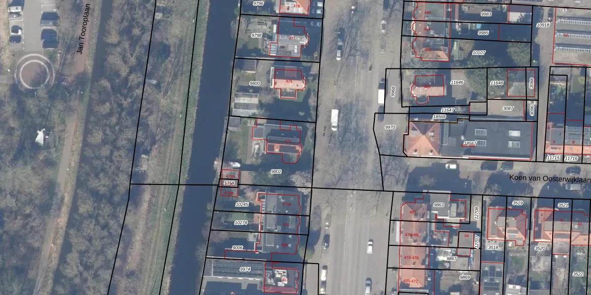 Amsterdamseweg 473 is gelegen op kadastraal perceel ASV00H9802. Deze kadastrale aanduiding is uniek en wordt gebruikt door het Kadaster om eigendomsrechten en andere zakelijke rechten vast te leggen. Het perceel maakt onderdeel uit van de kadastrale gemeente Amstelveen.