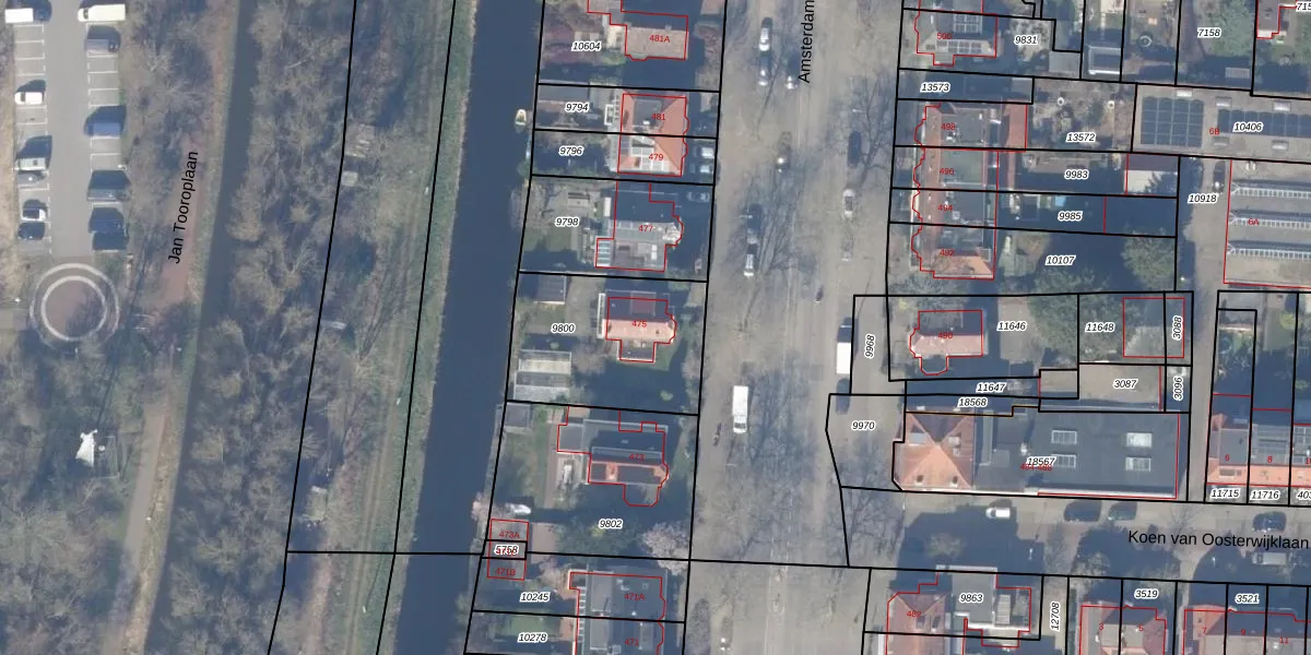 Amsterdamseweg 475 is gelegen op kadastraal perceel ASV00H9800. Deze kadastrale aanduiding is uniek en wordt gebruikt door het Kadaster om eigendomsrechten en andere zakelijke rechten vast te leggen. Het perceel maakt onderdeel uit van de kadastrale gemeente Amstelveen.