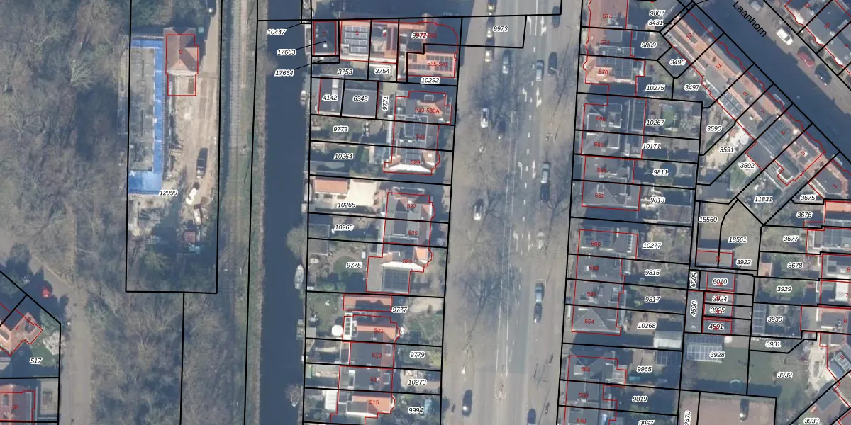 Amsterdamseweg 527 is gelegen op kadastraal perceel ASV00H10265. Deze kadastrale aanduiding is uniek en wordt gebruikt door het Kadaster om eigendomsrechten en andere zakelijke rechten vast te leggen. Het perceel maakt onderdeel uit van de kadastrale gemeente Amstelveen.