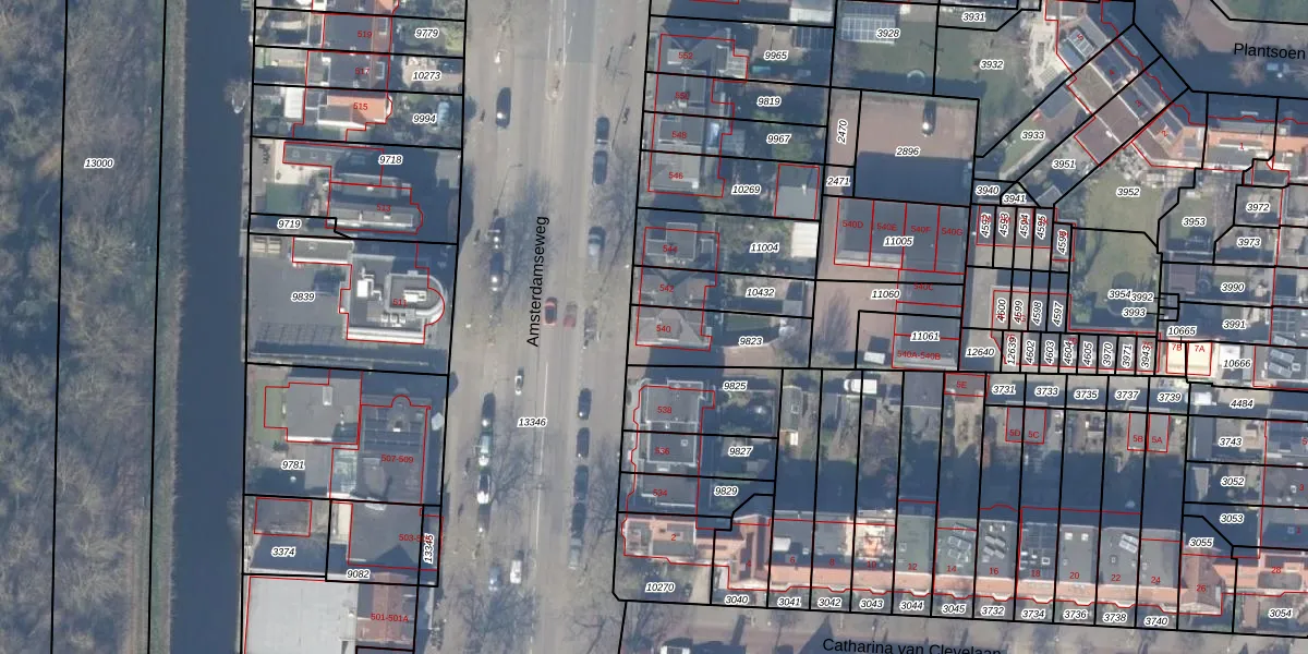 Gebruik de zoekbalk of klik op een perceel voor informatie over de adressen binnen dit perceel.