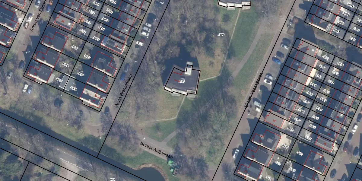 Anna Blamanlaan 49 is gelegen op kadastraal perceel ASV00O4895. Deze kadastrale aanduiding is uniek en wordt gebruikt door het Kadaster om eigendomsrechten en andere zakelijke rechten vast te leggen. Het perceel maakt onderdeel uit van de kadastrale gemeente Amstelveen.
