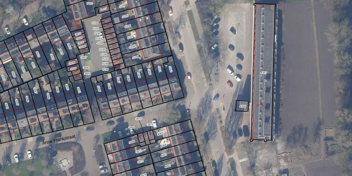 Het perceel waarop Anne Frankstraat 2 staat heeft een oppervlakte van 146 m². Dit is een middelgroot perceel. De perceeloppervlakte wordt geregistreerd door het Kadaster. Gedetailleerde informatie over de maten van dit perceel kunt u vinden in het rapport Kadastrale kaart met maatvoering van Anne Frankstraat 2.