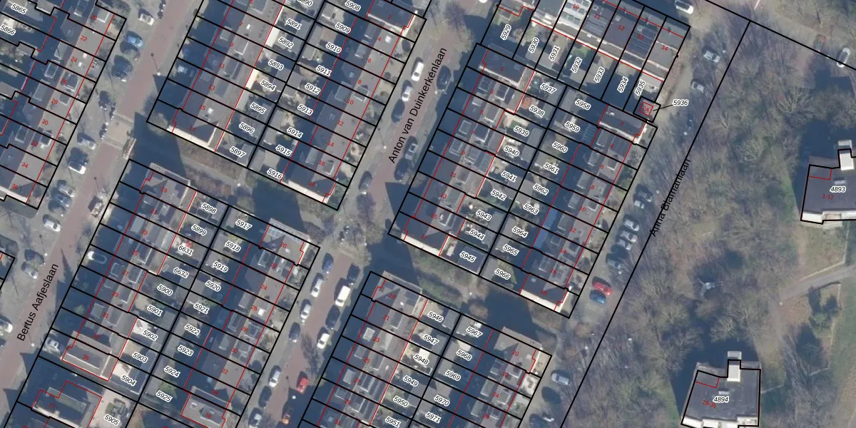 Gebruik de zoekbalk of klik op een perceel voor informatie over de adressen binnen dit perceel.