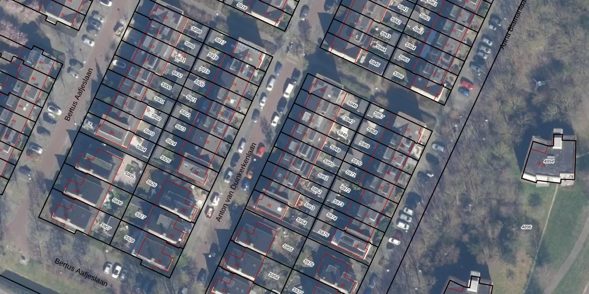 Gebruik de zoekbalk of klik op een perceel voor informatie over de adressen binnen dit perceel.