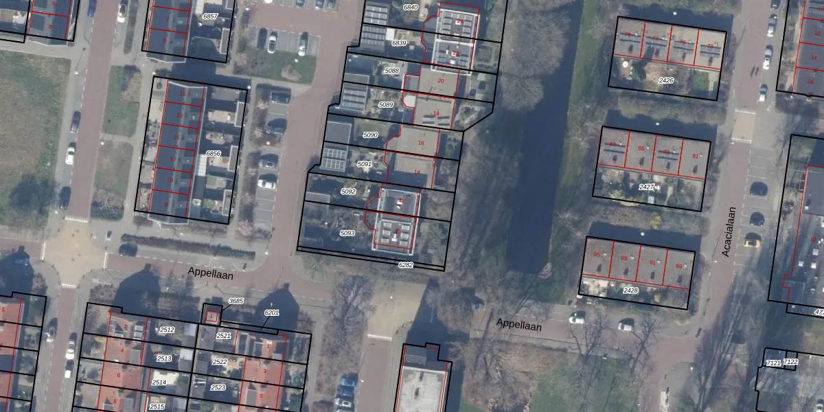 Appellaan 12 is gelegen op kadastraal perceel ASV00M5092. Deze kadastrale aanduiding is uniek en wordt gebruikt door het Kadaster om eigendomsrechten en andere zakelijke rechten vast te leggen. Het perceel maakt onderdeel uit van de kadastrale gemeente Amstelveen.