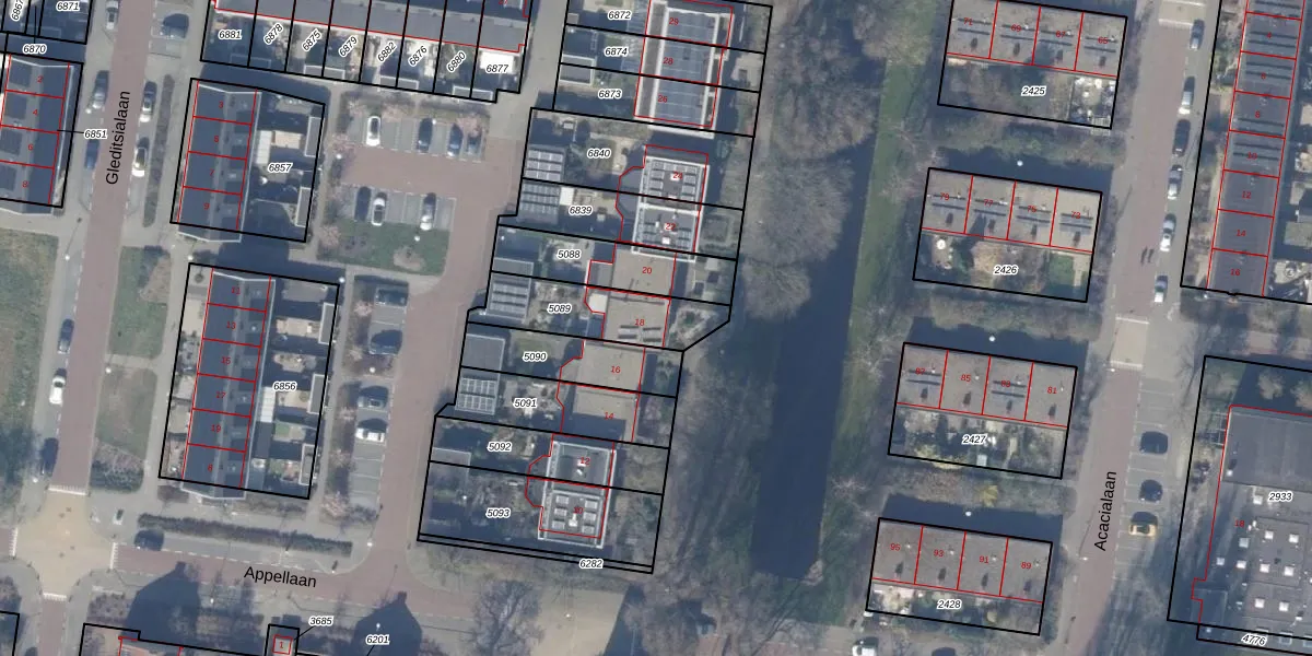 Appellaan 18 is gelegen op kadastraal perceel ASV00M5089. Deze kadastrale aanduiding is uniek en wordt gebruikt door het Kadaster om eigendomsrechten en andere zakelijke rechten vast te leggen. Het perceel maakt onderdeel uit van de kadastrale gemeente Amstelveen.
