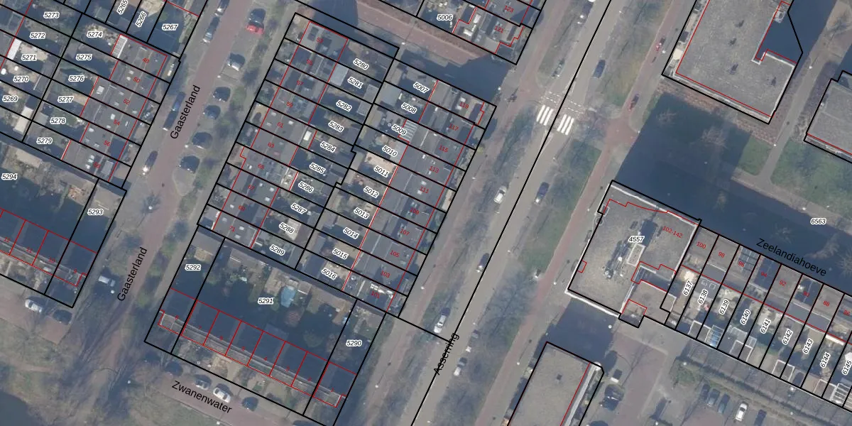 Gebruik de zoekbalk of klik op een perceel voor informatie over de adressen binnen dit perceel.