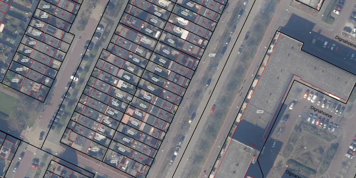Gebruik de zoekbalk of klik op een perceel voor informatie over de adressen binnen dit perceel.