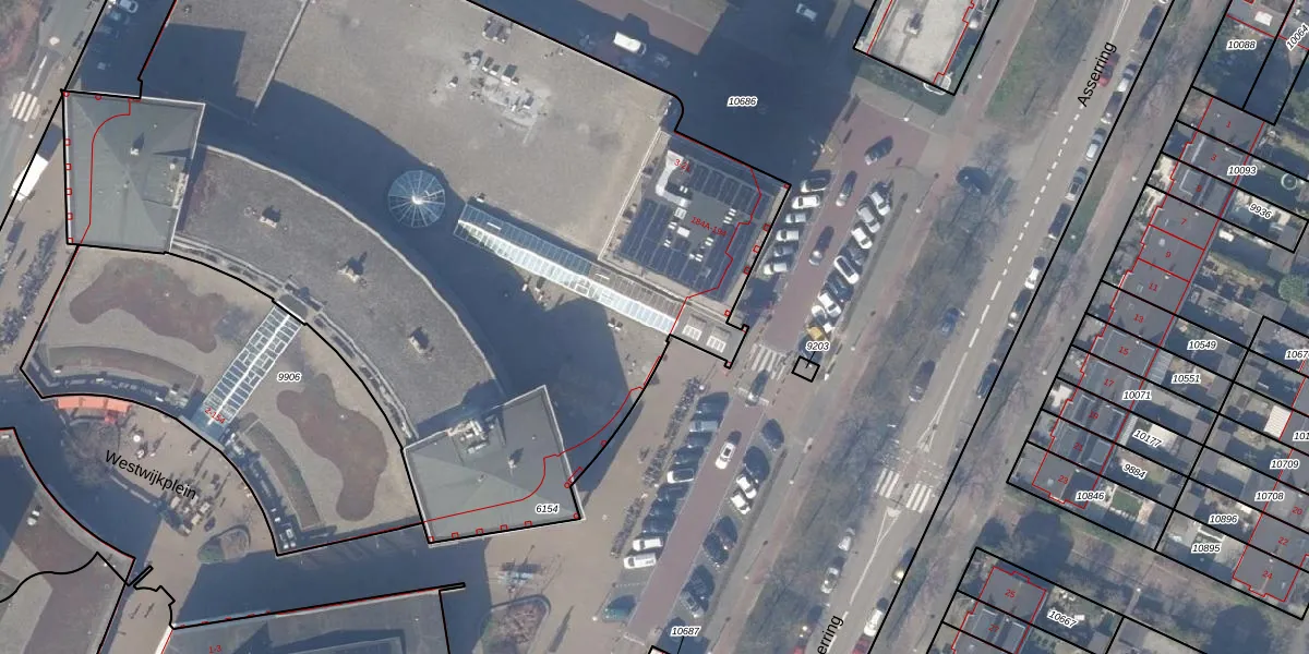 Het perceel waarop Asserring 190 staat heeft een oppervlakte van 6552 m². Dit is een zeer groot perceel. De perceeloppervlakte wordt geregistreerd door het Kadaster. Gedetailleerde informatie over de maten van dit perceel kunt u vinden in het rapport Kadastrale kaart met maatvoering van Asserring 190.