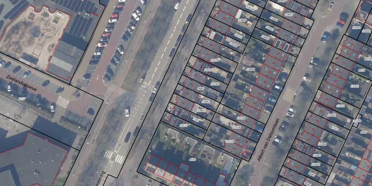 Gebruik de zoekbalk of klik op een perceel voor informatie over de adressen binnen dit perceel.