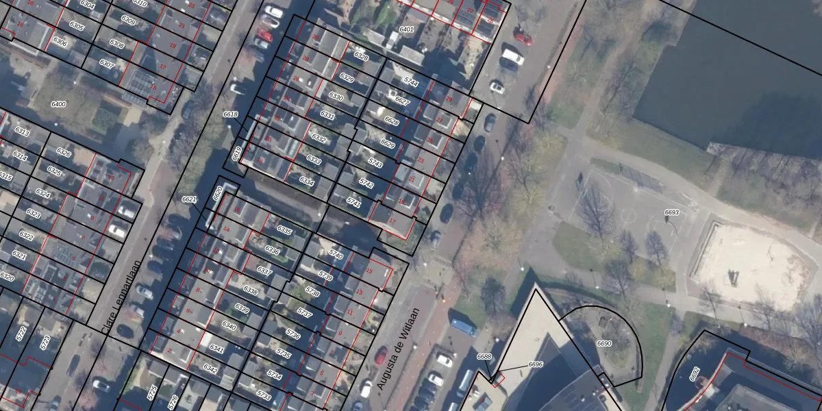Het perceel waarop Augusta de Witlaan 19 staat heeft een oppervlakte van 136 m². Dit is een middelgroot perceel. De perceeloppervlakte wordt geregistreerd door het Kadaster. Gedetailleerde informatie over de maten van dit perceel kunt u vinden in het rapport Kadastrale kaart met maatvoering van Augusta de Witlaan 19.