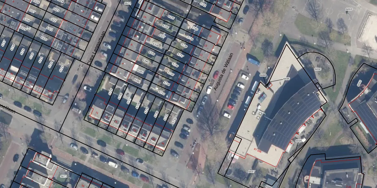 Augusta de Witlaan 3 is gelegen op kadastraal perceel ASV00O5734. Deze kadastrale aanduiding is uniek en wordt gebruikt door het Kadaster om eigendomsrechten en andere zakelijke rechten vast te leggen. Het perceel maakt onderdeel uit van de kadastrale gemeente Amstelveen.