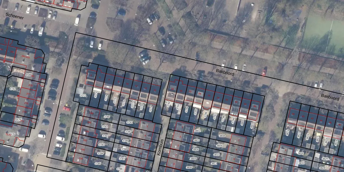 Gebruik de zoekbalk of klik op een perceel voor informatie over de adressen binnen dit perceel.