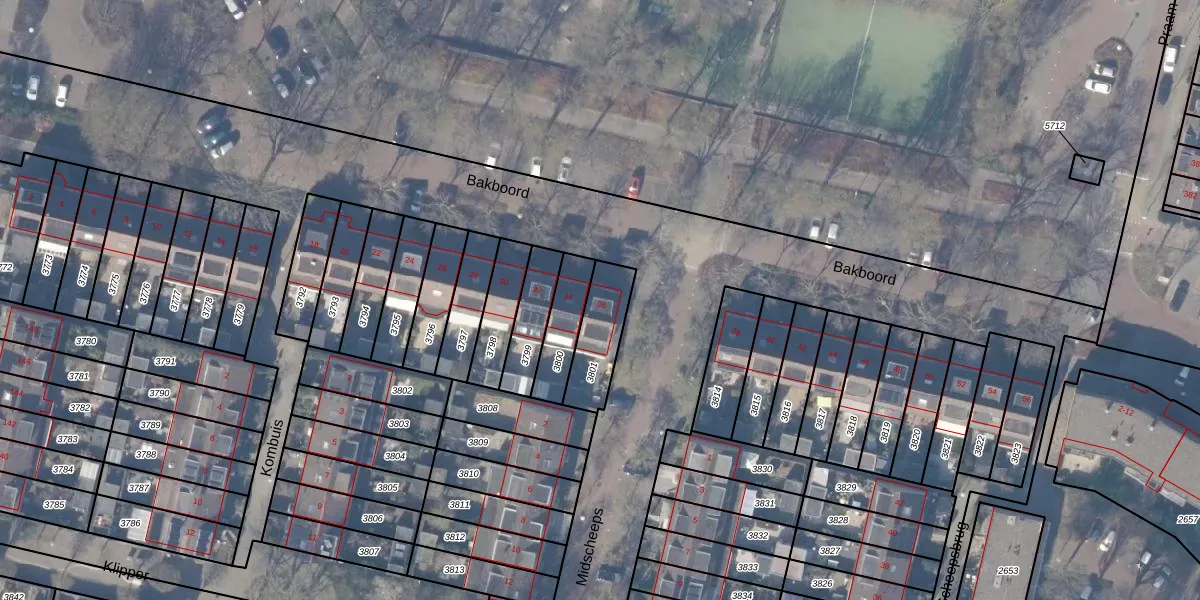 Het perceel waarop Bakboord 36 staat heeft een oppervlakte van 177 m². Dit is een middelgroot perceel. De perceeloppervlakte wordt geregistreerd door het Kadaster. Gedetailleerde informatie over de maten van dit perceel kunt u vinden in het rapport Kadastrale kaart met maatvoering van Bakboord 36.