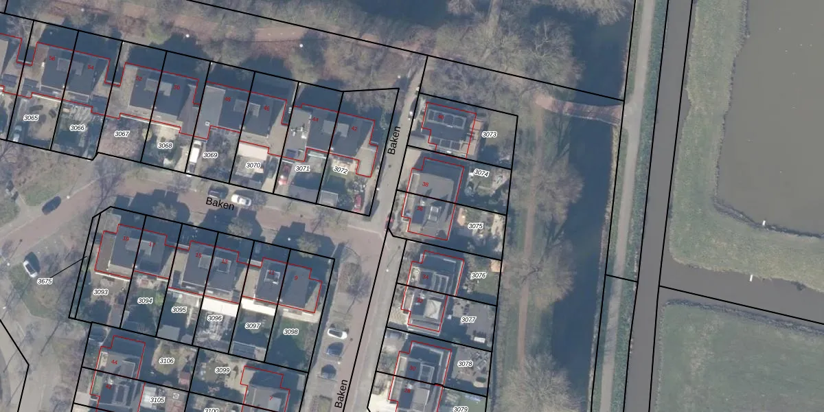 Het perceel waarop Baken 36 staat heeft een oppervlakte van 315 m². Dit is een groot perceel. De perceeloppervlakte wordt geregistreerd door het Kadaster. Gedetailleerde informatie over de maten van dit perceel kunt u vinden in het rapport Kadastrale kaart met maatvoering van Baken 36.