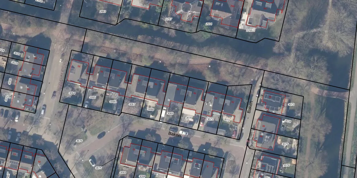 Het perceel waarop Baken 48 staat heeft een oppervlakte van 305 m². Dit is een groot perceel. De perceeloppervlakte wordt geregistreerd door het Kadaster. Gedetailleerde informatie over de maten van dit perceel kunt u vinden in het rapport Kadastrale kaart met maatvoering van Baken 48.
