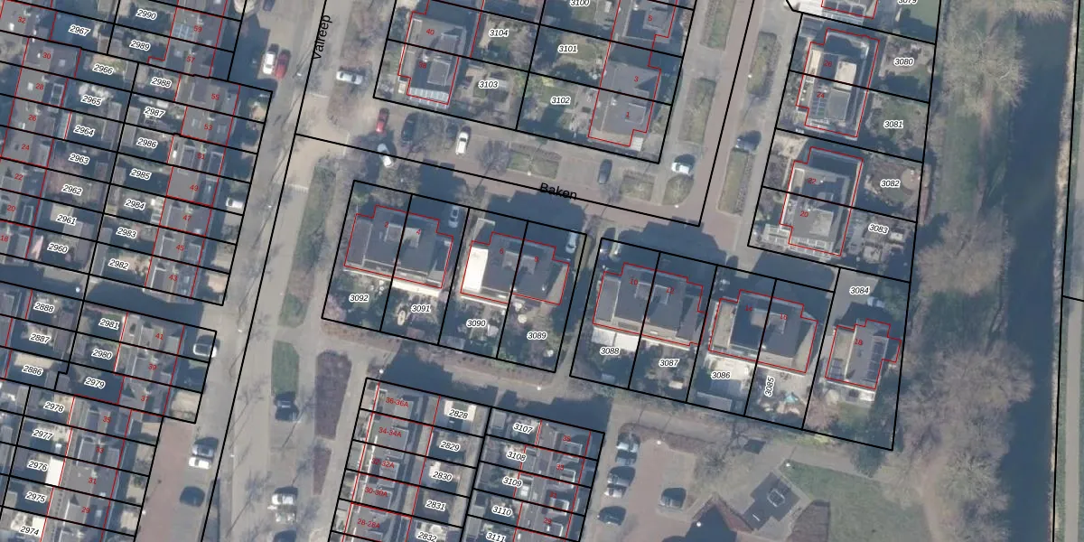 Gebruik de zoekbalk of klik op een perceel voor informatie over de adressen binnen dit perceel.