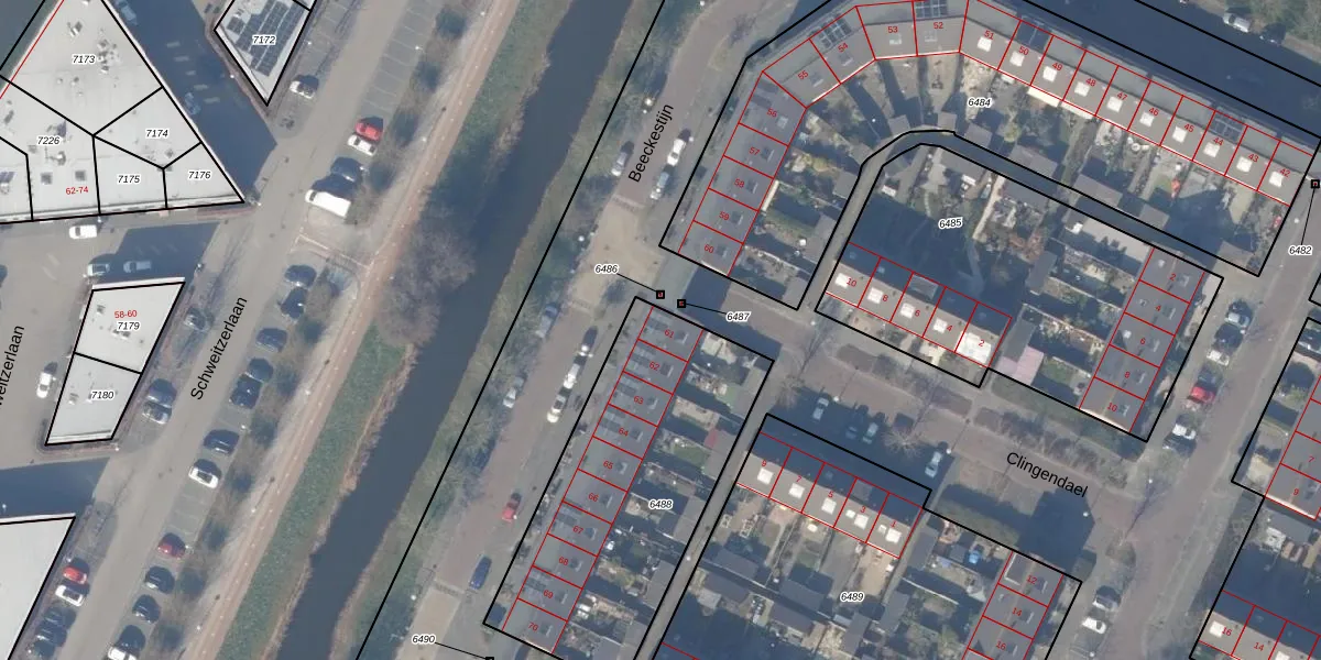 Het adres is gelegen op perceel 6488 in de sectie O en de kadastrale gemeente Amstelveen. De kadastrale aanduiding is aldus ASV00-O-6488. Het perceel is 1257 m² groot. Dat is kleiner dan de gemiddelde perceeloppervlakte in Amstelveen, dat op 1598,72 m² ligt. Het kleinste perceel in de kadastrale gemeente is 0 m² groot. De grootste perceeloppervlakte is 1,78 km². Op het perceel liggen in totaal 10 adressen. De laatste wijziging in het de Basisregistratie Kadaster (BRK) was op 02-11-1998.