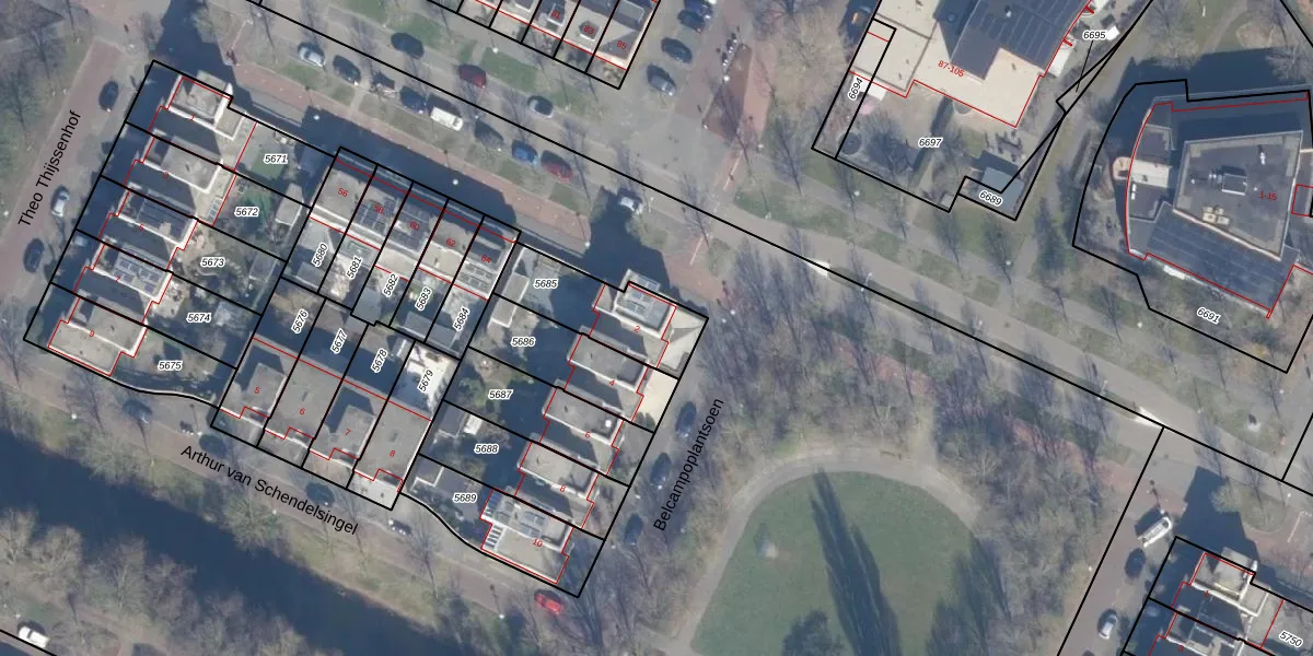 Belcampoplantsoen 2 is gelegen op kadastraal perceel ASV00O5685. Deze kadastrale aanduiding is uniek en wordt gebruikt door het Kadaster om eigendomsrechten en andere zakelijke rechten vast te leggen. Het perceel maakt onderdeel uit van de kadastrale gemeente Amstelveen.