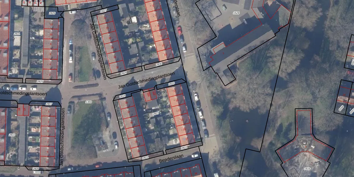 Benderslaan 17 is gelegen op kadastraal perceel ASV00M2823. Deze kadastrale aanduiding is uniek en wordt gebruikt door het Kadaster om eigendomsrechten en andere zakelijke rechten vast te leggen. Het perceel maakt onderdeel uit van de kadastrale gemeente Amstelveen.