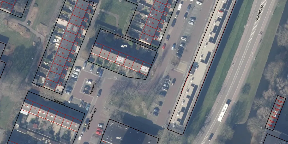 Het perceel waarop Bernina 1 staat heeft een oppervlakte van 1006 m². Dit is een zeer groot perceel. De perceeloppervlakte wordt geregistreerd door het Kadaster. Gedetailleerde informatie over de maten van dit perceel kunt u vinden in het rapport Kadastrale kaart met maatvoering van Bernina 1.