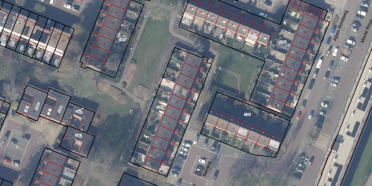 Het perceel waarop Bernina 11 staat heeft een oppervlakte van 1433 m². Dit is een zeer groot perceel. De perceeloppervlakte wordt geregistreerd door het Kadaster. Gedetailleerde informatie over de maten van dit perceel kunt u vinden in het rapport Kadastrale kaart met maatvoering van Bernina 11.