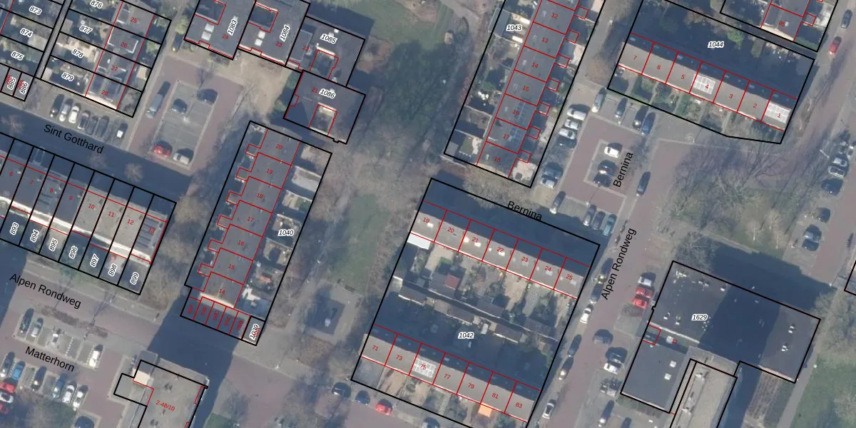 Het perceel waarop Bernina 19 staat heeft een oppervlakte van 2144 m². Dit is een zeer groot perceel. De perceeloppervlakte wordt geregistreerd door het Kadaster. Gedetailleerde informatie over de maten van dit perceel kunt u vinden in het rapport Kadastrale kaart met maatvoering van Bernina 19.