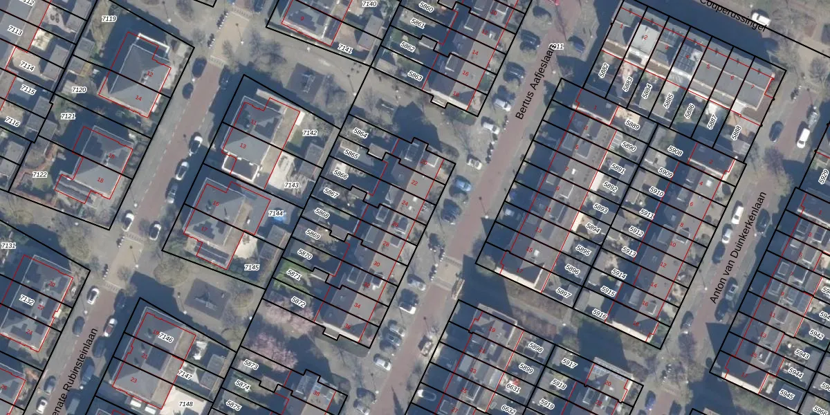 Gebruik de zoekbalk of klik op een perceel voor informatie over de adressen binnen dit perceel.