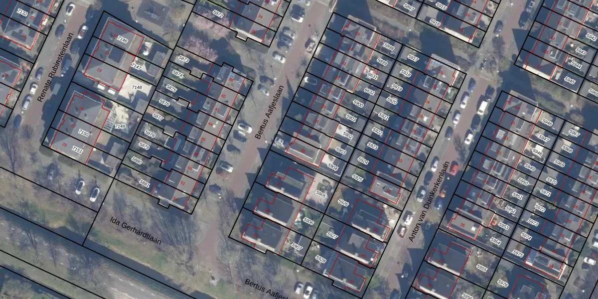 Gebruik de zoekbalk of klik op een perceel voor informatie over de adressen binnen dit perceel.