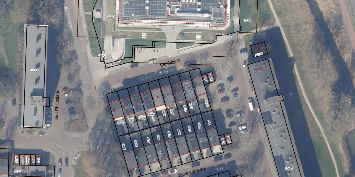 Gebruik de zoekbalk of klik op een perceel voor informatie over de adressen binnen dit perceel.