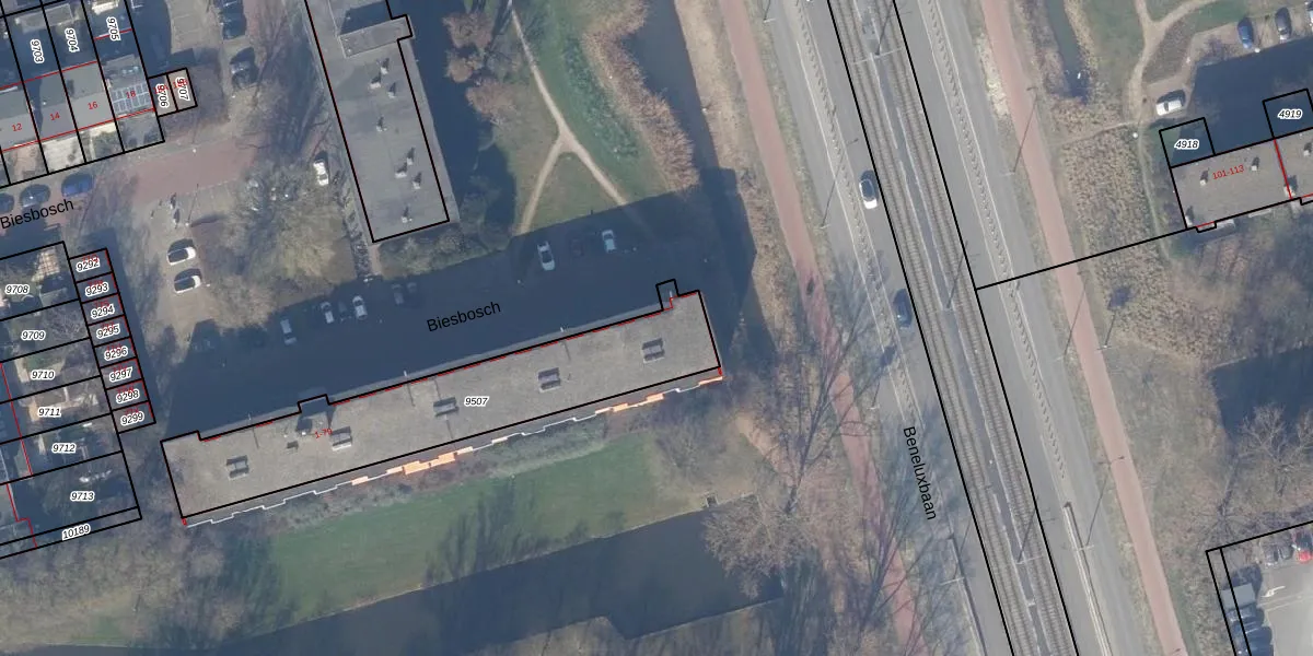 Biesbosch 77-B is gelegen op kadastraal perceel ASV00H9507. Deze kadastrale aanduiding is uniek en wordt gebruikt door het Kadaster om eigendomsrechten en andere zakelijke rechten vast te leggen. Het perceel maakt onderdeel uit van de kadastrale gemeente Amstelveen.