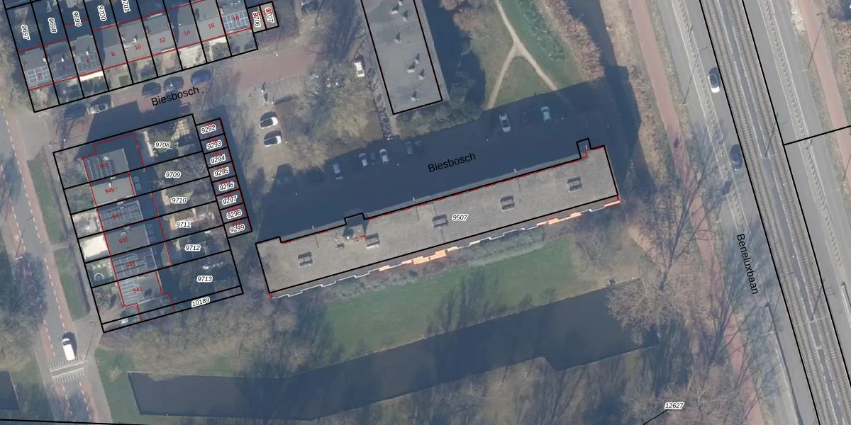 Het perceel waarop Biesbosch 77-K staat heeft een oppervlakte van 938 m². Dit is een groot perceel. De perceeloppervlakte wordt geregistreerd door het Kadaster. Gedetailleerde informatie over de maten van dit perceel kunt u vinden in het rapport Kadastrale kaart met maatvoering van Biesbosch 77-K.