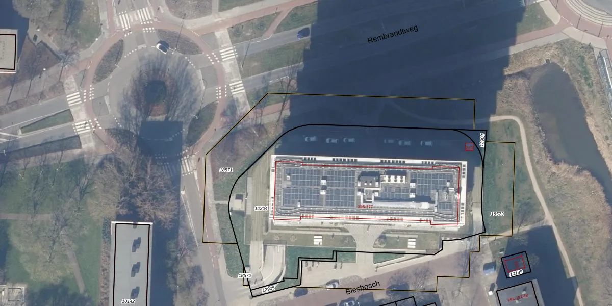 Het perceel waarop het adres ligt is ASV00-H-12304. De afkorting 'ASV00' staat voor kadastrale gemeente Amstelveen. De gemiddelde perceeloppervlakte in de kadastrale gemeente Amstelveen is 1598,37 m². Dit perceel is met zijn 3289 m² dus groter dan gemiddeld. Het grootste perceel in de kadastrale gemeente is 1,78 km². Het kleinste perceel heeft een oppervlakte van 0 m². Er zijn 279 adressen aanwezig op het perceel. De laatste wijziging in het de Basisregistratie Kadaster (BRK) was op 08-07-2025.