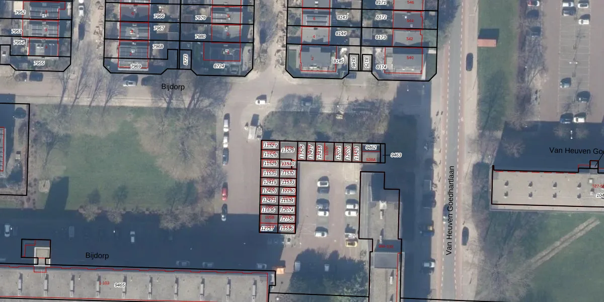 Het perceel waarop Bijdorp 107-L staat heeft een oppervlakte van 19 m². Dit is een klein perceel. De perceeloppervlakte wordt geregistreerd door het Kadaster. Gedetailleerde informatie over de maten van dit perceel kunt u vinden in het rapport Kadastrale kaart met maatvoering van Bijdorp 107-L.