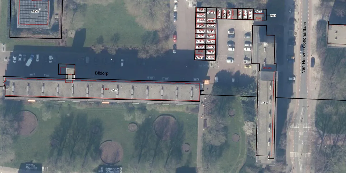 Bijdorp 11-B is gelegen op kadastraal perceel ASV00H9465. Deze kadastrale aanduiding is uniek en wordt gebruikt door het Kadaster om eigendomsrechten en andere zakelijke rechten vast te leggen. Het perceel maakt onderdeel uit van de kadastrale gemeente Amstelveen.