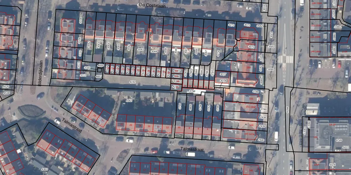 Het perceel waarop Bilderdijklaan 2-S staat heeft een oppervlakte van 24 m². Dit is een klein perceel. De perceeloppervlakte wordt geregistreerd door het Kadaster. Gedetailleerde informatie over de maten van dit perceel kunt u vinden in het rapport Kadastrale kaart met maatvoering van Bilderdijklaan 2-S.