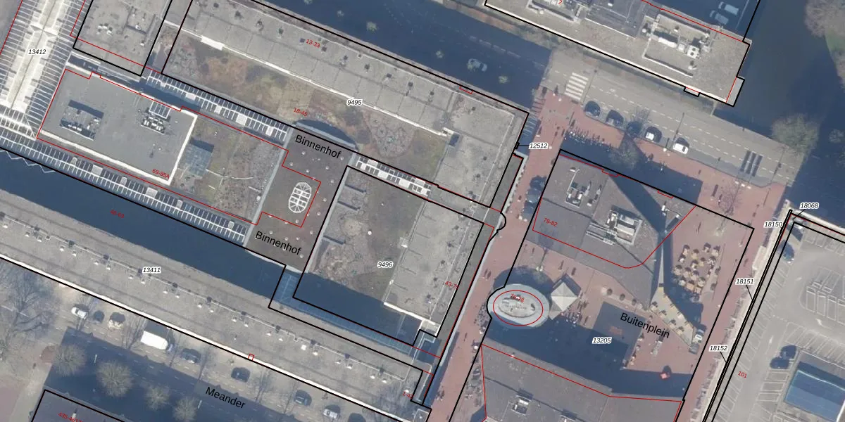 Het perceel waarop Binnenhof 35 staat heeft een oppervlakte van 1153 m². Dit is een zeer groot perceel. De perceeloppervlakte wordt geregistreerd door het Kadaster. Gedetailleerde informatie over de maten van dit perceel kunt u vinden in het rapport Kadastrale kaart met maatvoering van Binnenhof 35.