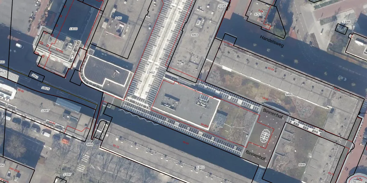 Het perceel waarop Binnenhof 83 staat heeft een oppervlakte van 5795 m². Dit is een zeer groot perceel. De perceeloppervlakte wordt geregistreerd door het Kadaster. Gedetailleerde informatie over de maten van dit perceel kunt u vinden in het rapport Kadastrale kaart met maatvoering van Binnenhof 83.