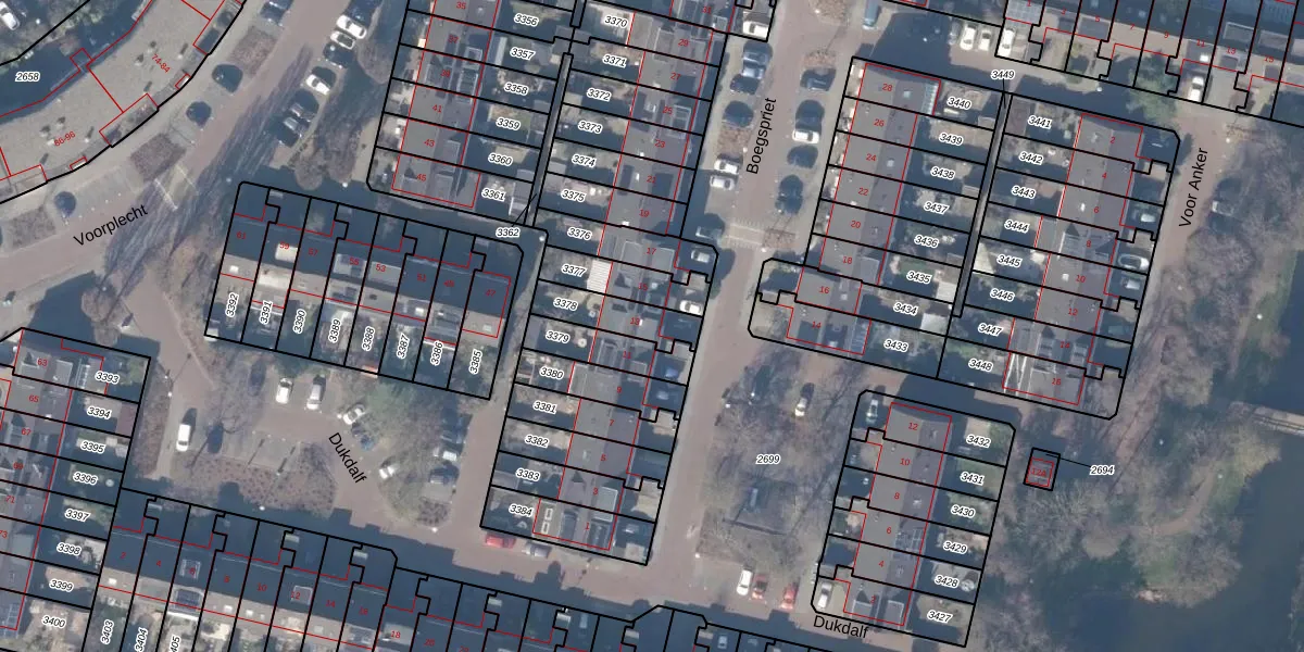 Gebruik de zoekbalk of klik op een perceel voor informatie over de adressen binnen dit perceel.