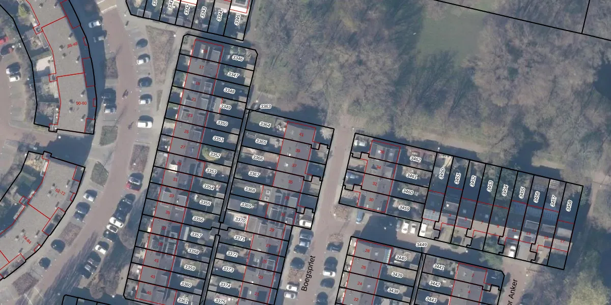 Gebruik de zoekbalk of klik op een perceel voor informatie over de adressen binnen dit perceel.