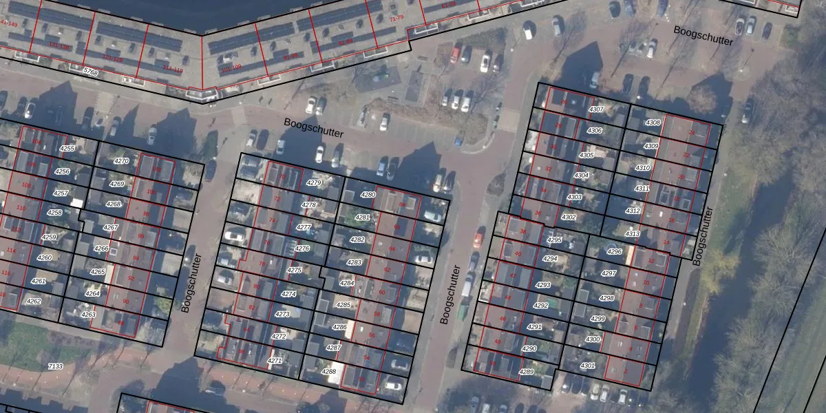 Gebruik de zoekbalk of klik op een perceel voor informatie over de adressen binnen dit perceel.